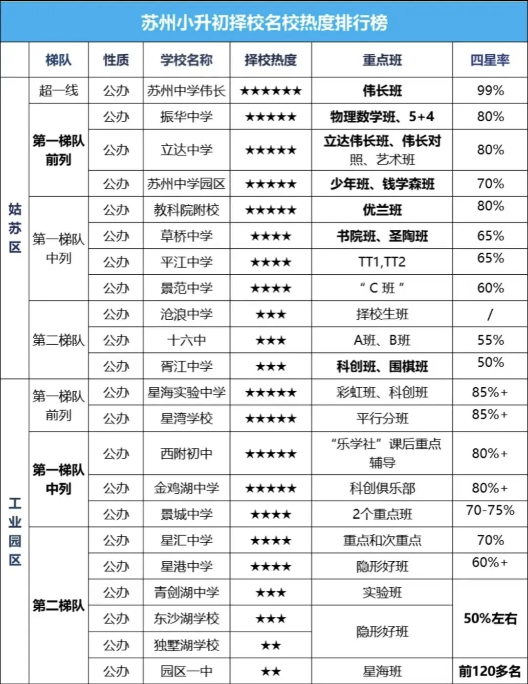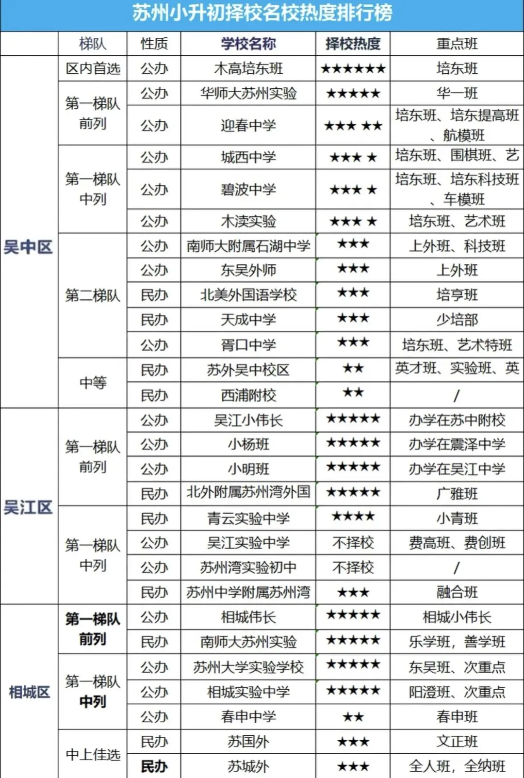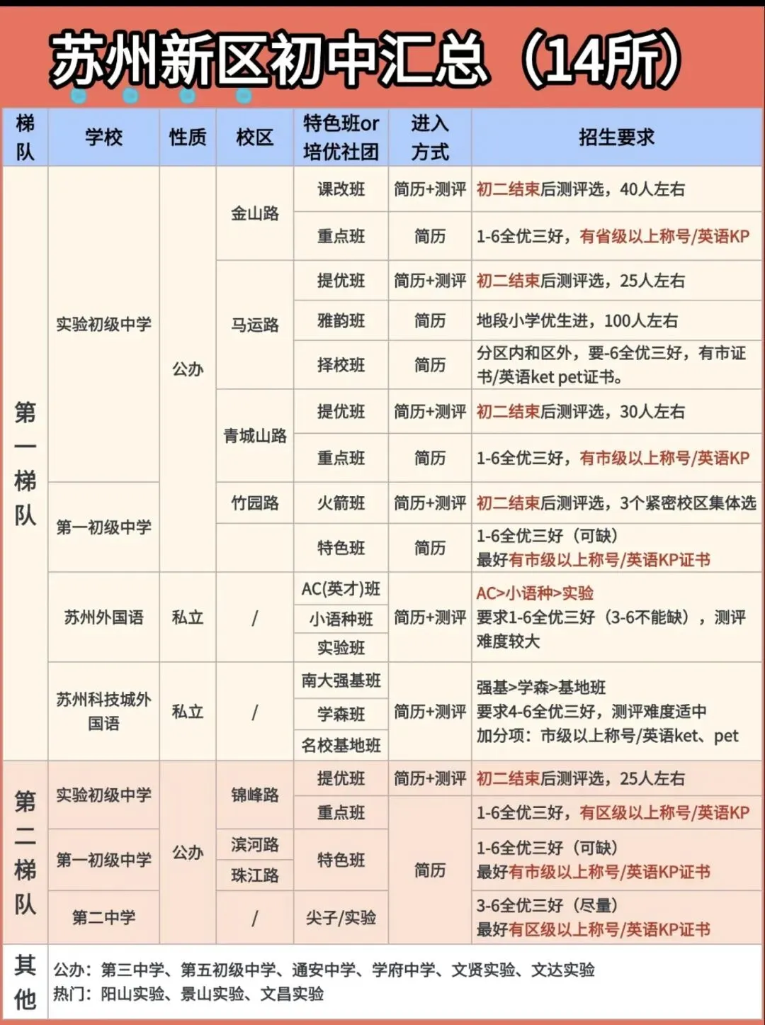 公立:木高培东班、城西、石湖、碧波、胥口中学、华师大苏州实验初中、太湖湾实验中学、东吴外师、独墅湖中学、天平...