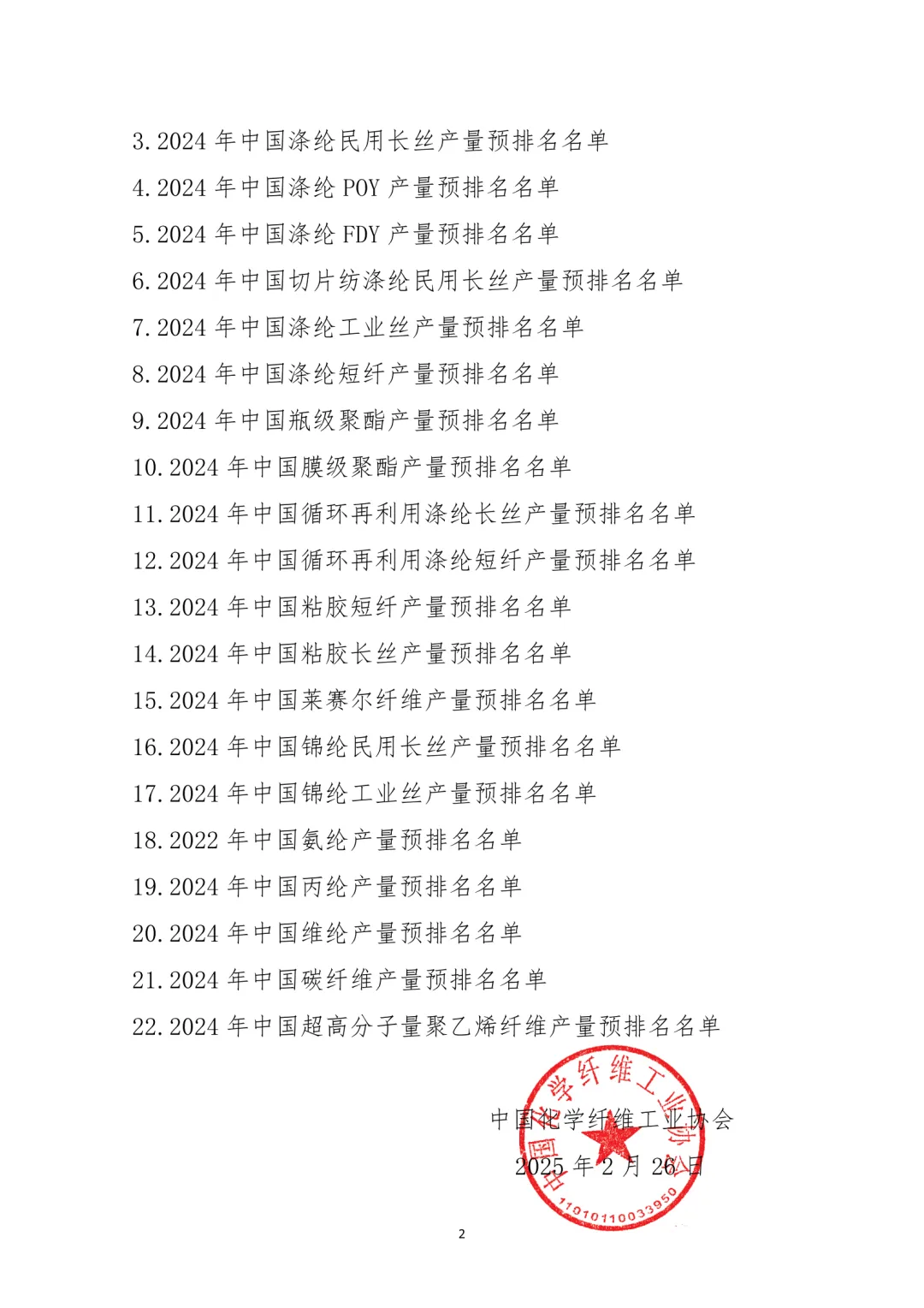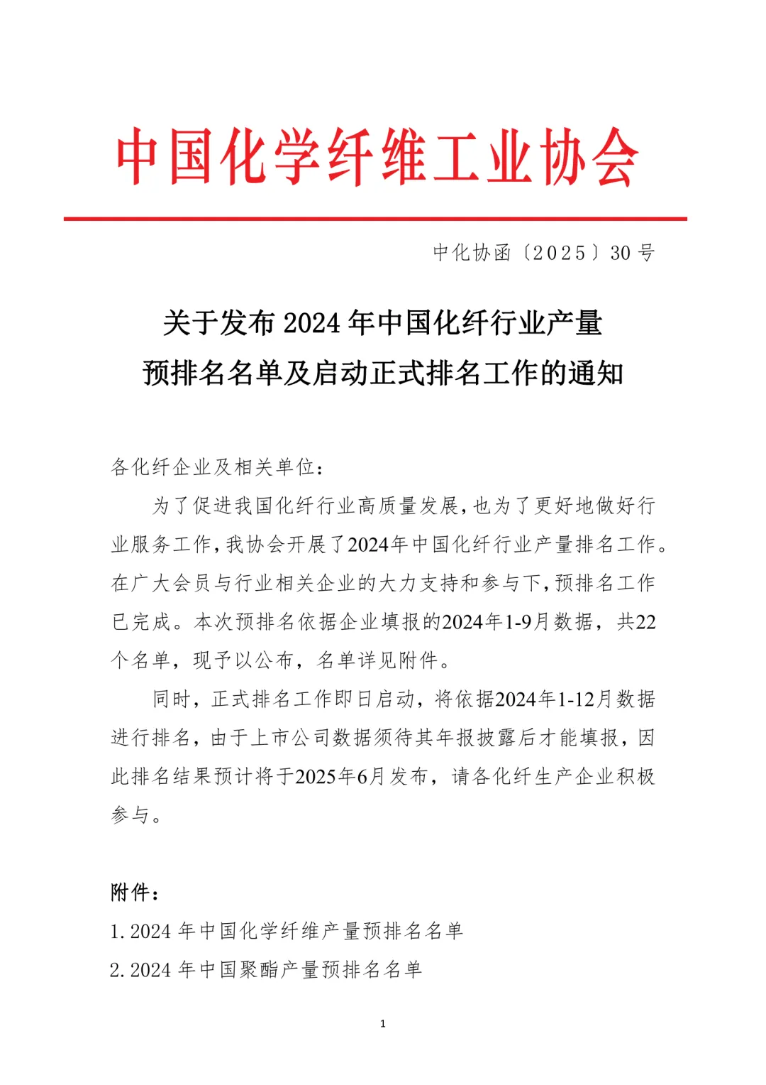 为了促进我国化纤行业高质量发展,也为了更好地为行业服务,中国化学纤维工业协会于2024年继续开展了中国化纤行业产量排名工作。在广大会员与行业相关企业的大力支持和参与下,2024年预排名工作已完成。本次排名根据2024年1-9月企业填报数据,分为化学纤维产量综合排名以及21个细分产品产量排名,现予以公布。