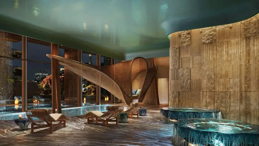 专属康养楼层:提供连续的恢复性体验,包括总共6个泳池(含25米无边泳池和室内泳池)、桑拿、冷冻疗法及融合东西方特色的水疗。