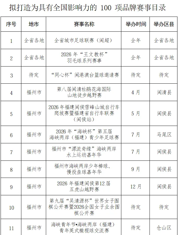 涵盖了“闽超”、福州马拉松等赛事