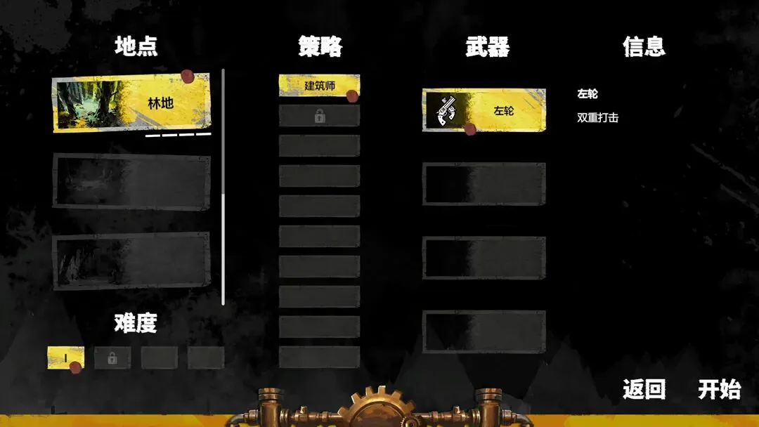 1、进入后点击新游戏,选择游戏地点、要携带的武器,以及难度,点击开始;