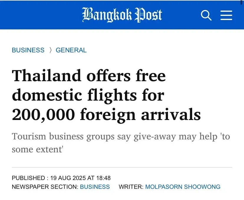 根据泰国旅游局计划重新提交的旅游刺激计划,外国游客购买指定舱位国际机票前往泰国,可以获得免费泰国内往返航班。就看这次能不能获批了!不过以目前这个进度,泼水节应该是赶不上咯…