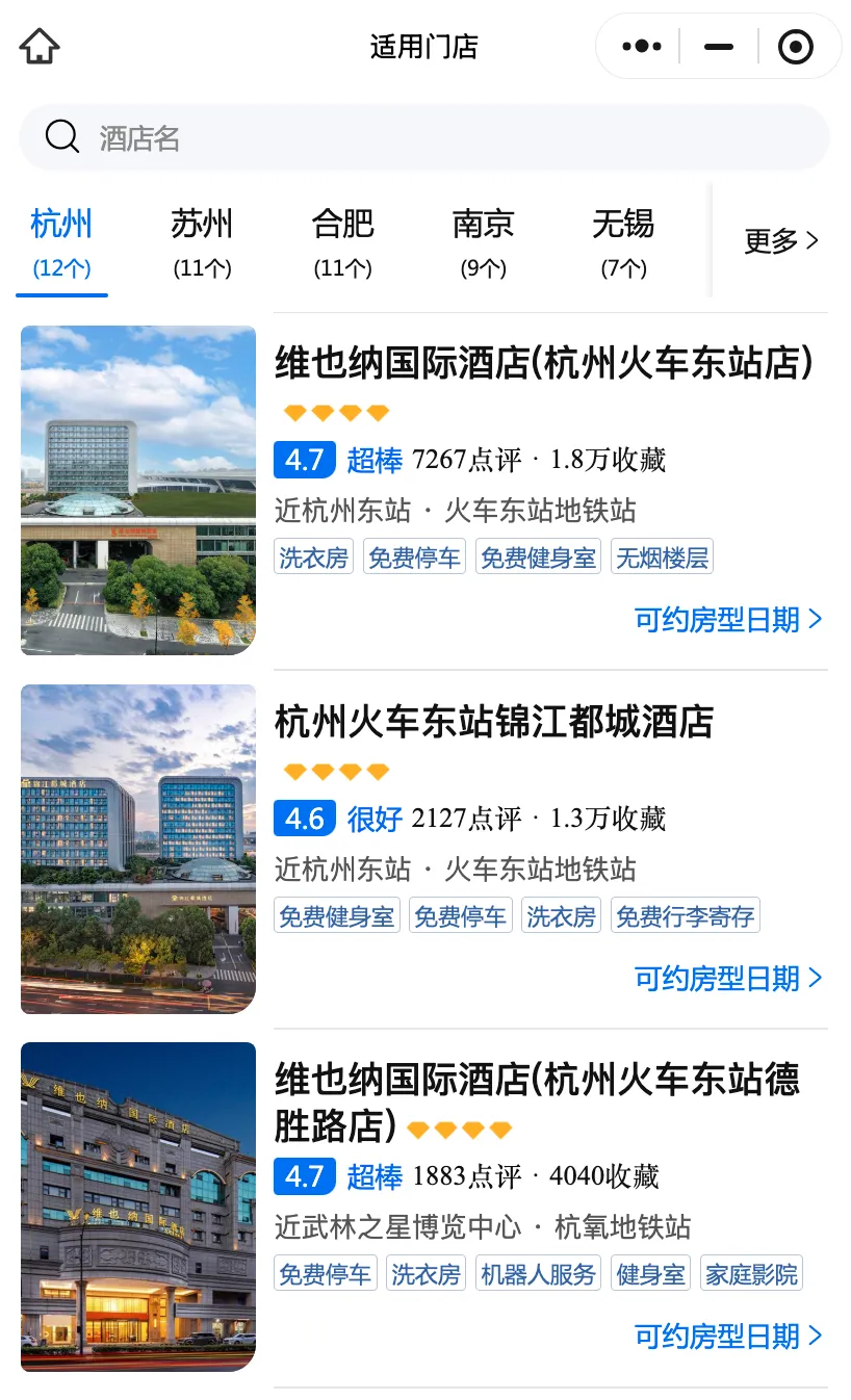 比如华东,可以看看下面这几个通兑,涵盖上海/杭州/苏州/南京/无锡等热门城市,入住有效期到5月底,全程通用,清明/五一/周末都不加价!