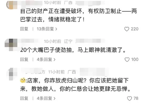 事情曝光后,网友们瞬间炸了锅,群情激愤。有人直言:“对付这种人,两巴掌过去,她的情绪就稳定了!”也有网友调侃曾女士:“你咋放虎归山呢?就该把她留下来,好好教她做人。”