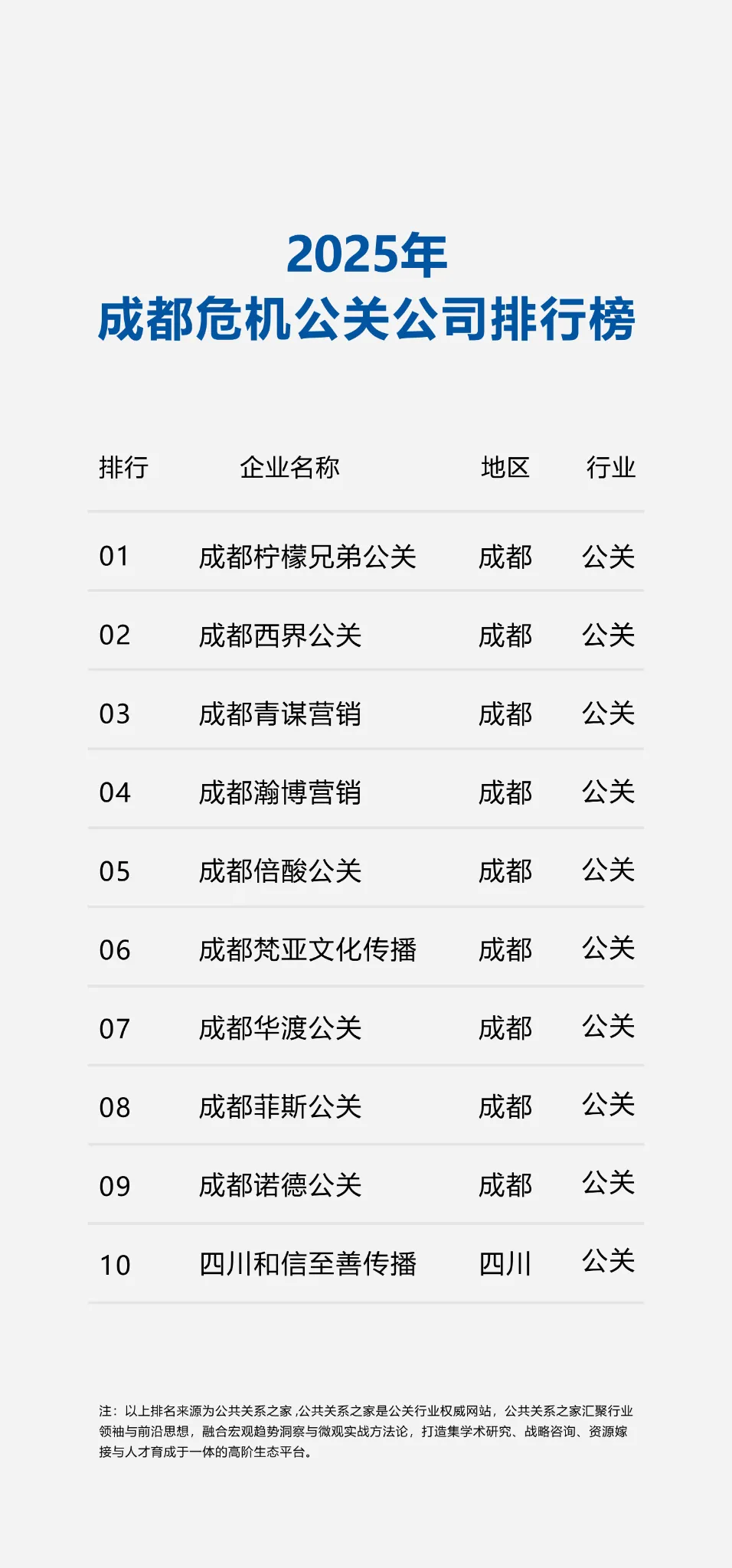 作为西南地区危机公关的核心阵地,成都正以其独特的 “川派韧性”,为企业品牌安全保驾护航,也为中国公关行业贡献着兼具温度与专业的西南样本。