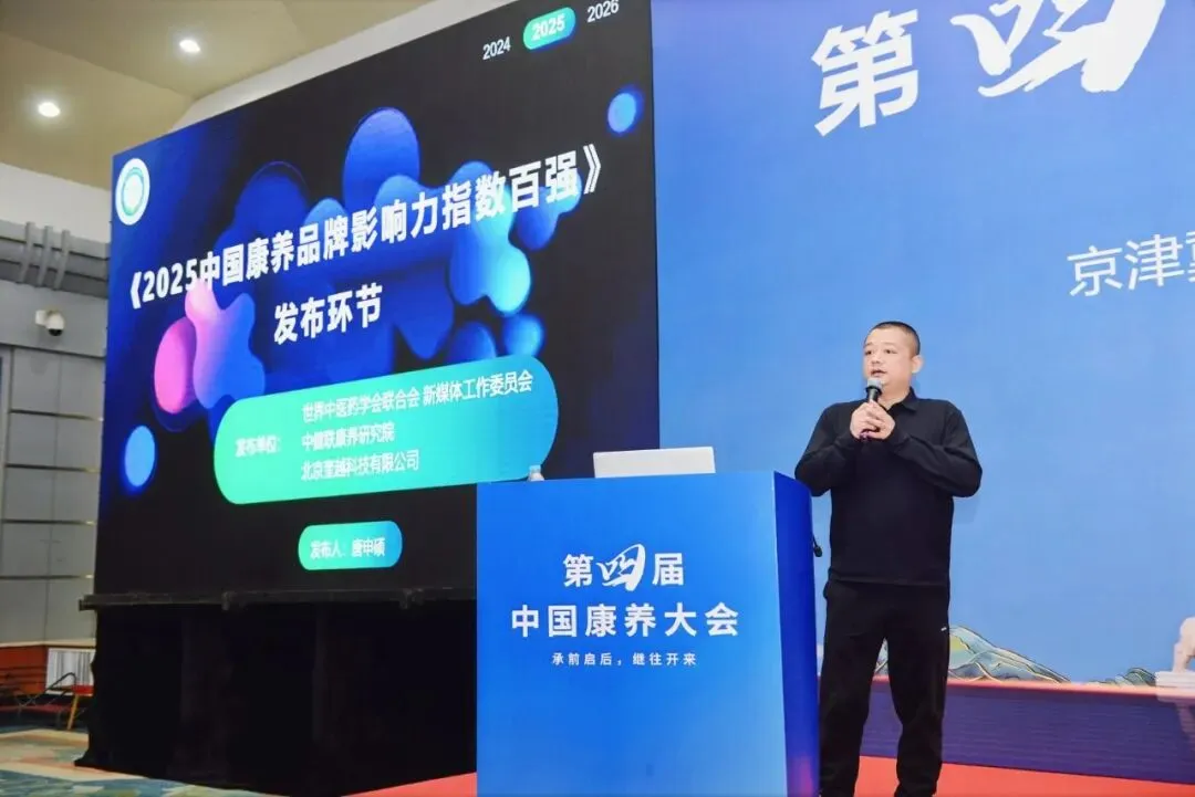 世界中医药学会联合会新媒体工委会副会长、中健联康养研究院副院长唐申硕发布《2025中国康养品牌影响力指数100强》。