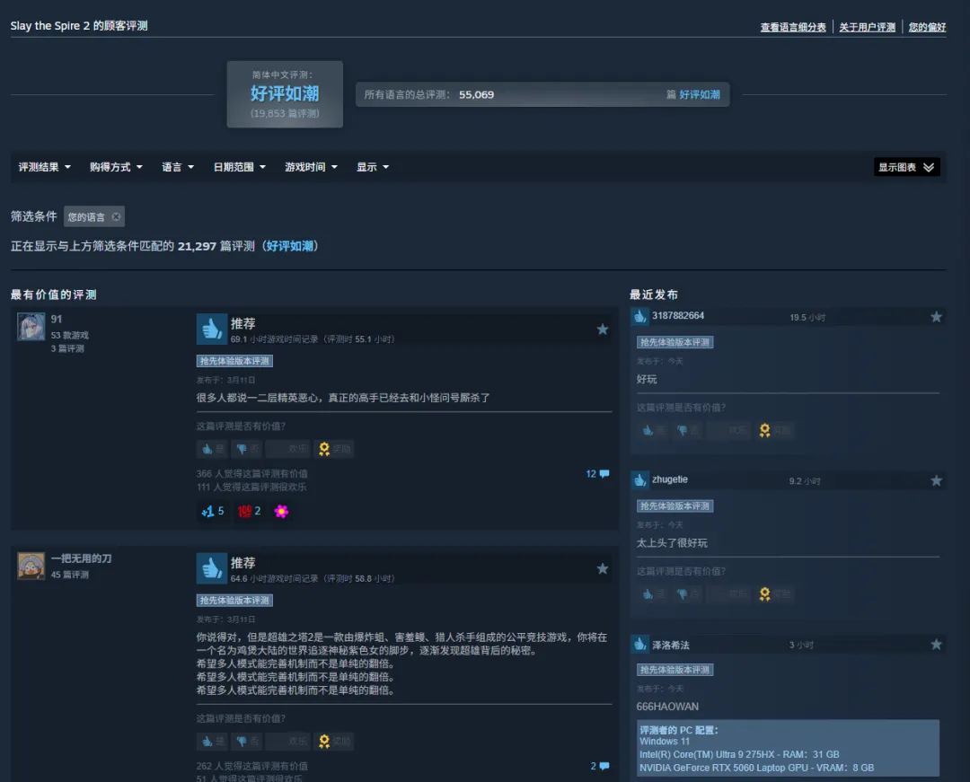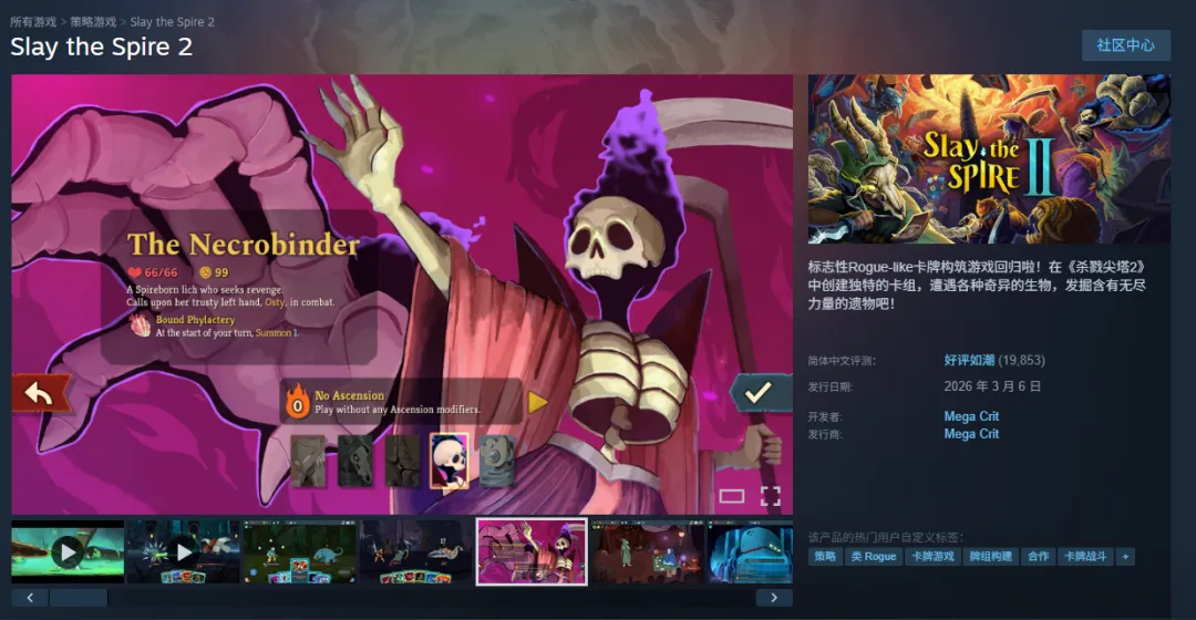 ~Q交流群【AMP实验室后厨:679837318】~18 日消息,Steam 现已公布了最新一周游戏销量排行榜(2026 年 3 月 10 日-2026 年 3 月 17 日,无免费游戏),《杀戮尖塔 2》成功连冠全球 / 国区榜,而近期热门的《红色沙漠》(预购)在全球销量榜排行第二:《杀戮尖塔2》于本月6日上市,为抢先体验版本,预计在1~2年范围内完成正式版。究极的卡牌肉鸽游戏再度归来!