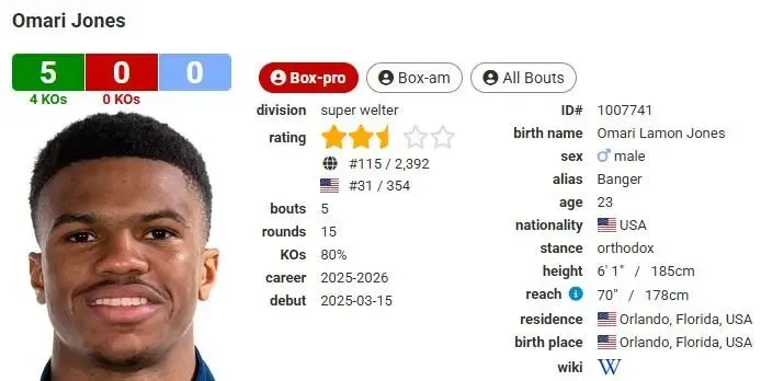 三、奥玛尔.琼斯VS戈麦兹(23胜21KO6负)。琼斯是奥运铜牌得主,拳有些轻,上一场打得有些狼狈。这场的墨西哥对手击倒率高,但最近5场输了4场,估计这场是俩种风格迥异的对决,考验琼斯跑跑点点的能力,希望能出现冷门。