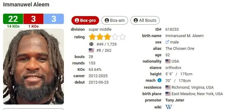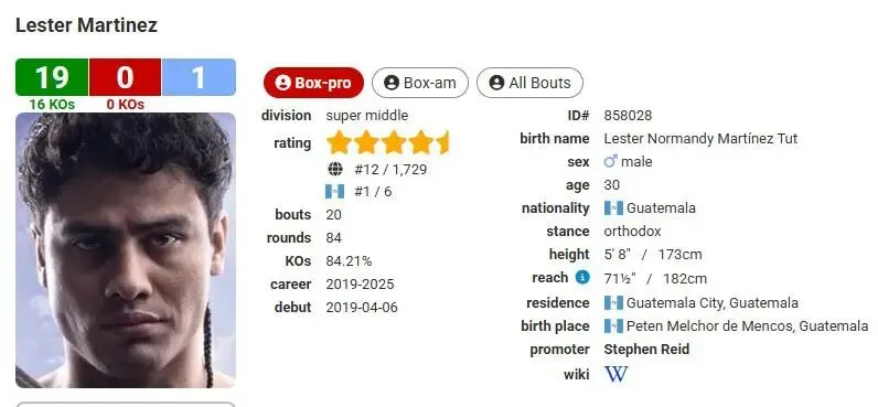 五、莱斯特.马丁VS 阿利姆。超中量级,这场胜了好像马丁又可以挑战姆比利了。阿利姆不熟悉,战绩上看不痛不痒,最近五场未败。才175公分高。这是周日上午另一个场地的主赛。