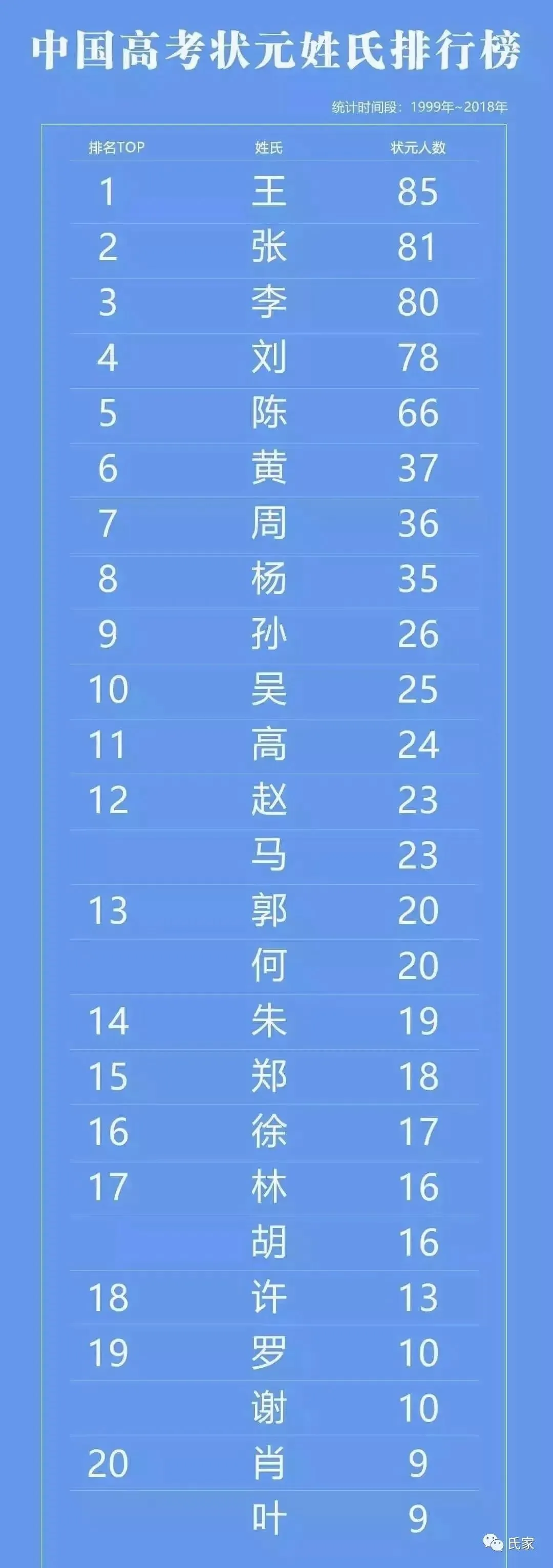 《高考状元姓氏排行榜》