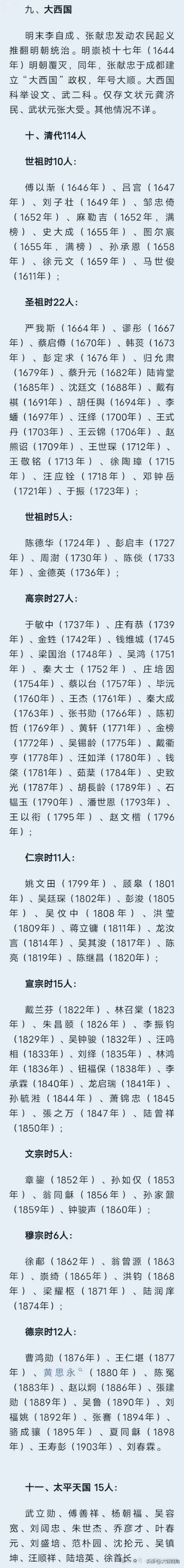 638名状元名单大全