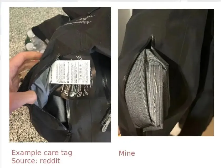 标签:有主标、水洗标,但可能剪掉部分(正品完整);看面料码、批号是否匹配官网。