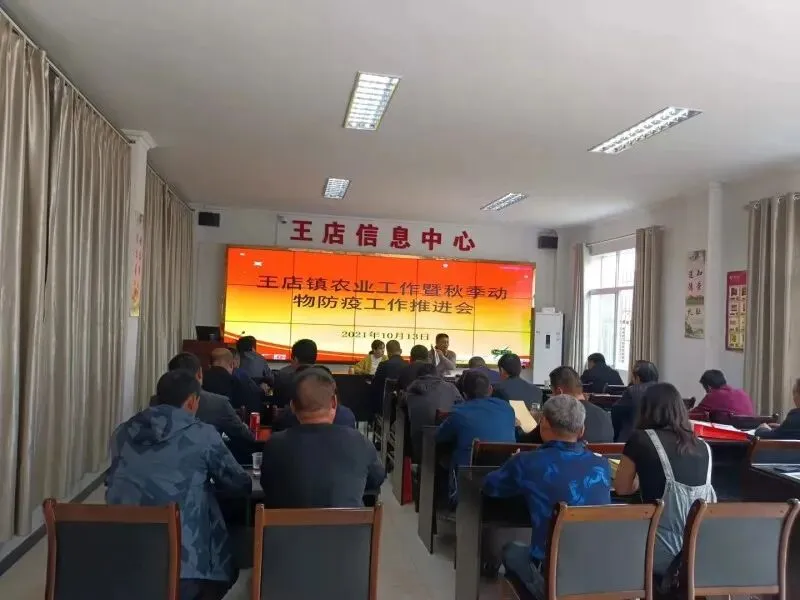 10月13日上午,王店镇召开2021年度秋季动物防疫工作推进会,各村(社区)分管负责人、全体防疫员参加会议,会议要求,全镇秋季动物防疫要做到应免尽免、不漏一针,确保各项免疫密度达标,同时严格消毒,确保防疫质量。(通讯员:谭桃玲)