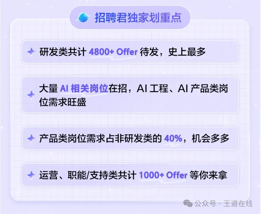 7000+Offer、转正率超 50%......其中研发岗位4800+,大量AI相关岗位在招,AI工程、AI产品类需求旺盛。