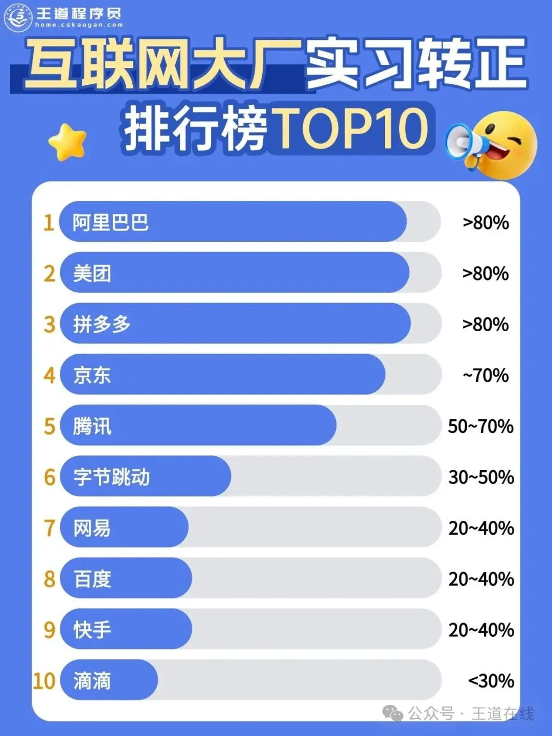 最近网上着互联网大厂实习转正排行榜TOP10,以上两家大厂的排名分别在第五、第六。