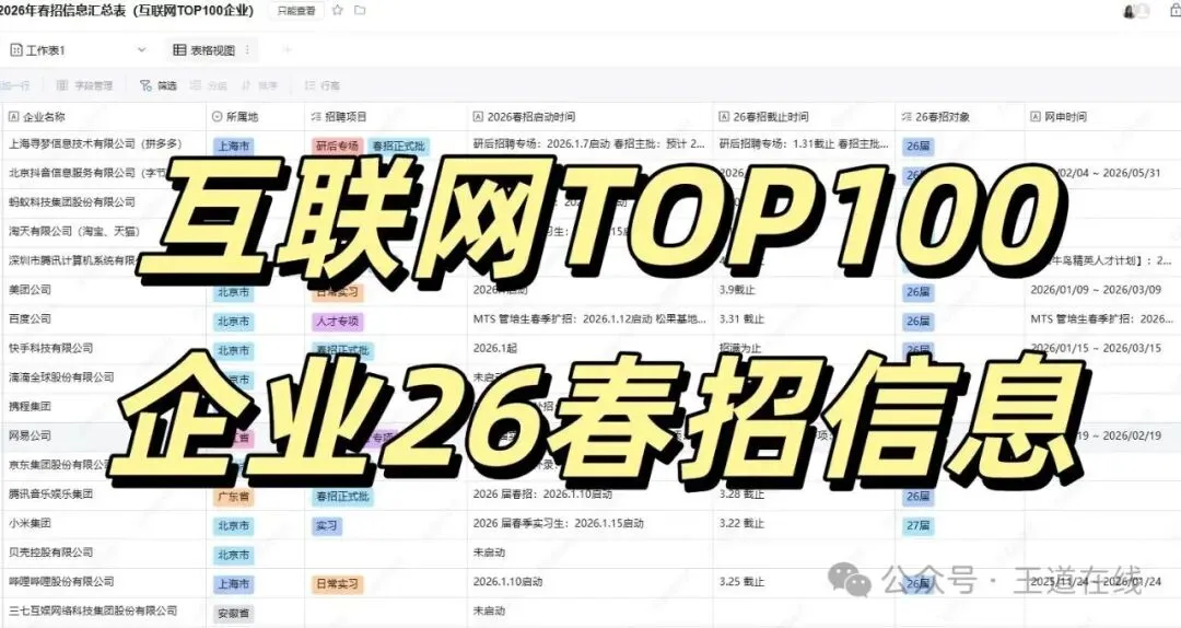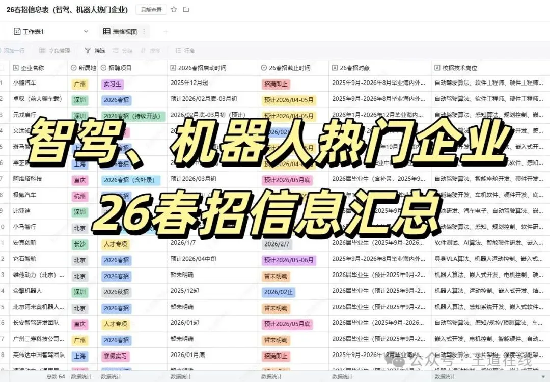,其中包括了互联网、智能制造、智能驾驶、工业软件、机器人、人工智能等各行各业,包含了26春招岗位和实习岗位,王道都给大家整理出来了!