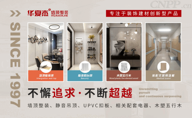 创于1997年,知名集成墙板品牌,致力于环保装饰建材产品研发、制造、销售的高新技术企业,主要提供墙顶整装、集成墙面、整体阳台、美标和欧标的室内外各式装饰板材和全系列配套线材,华夏杰以“五行木”作为主要材料,打造以快装环保为重要特点的集成墙顶,作为浙江省级专利示范企业,有着强大的产品创新研发和制造能力。