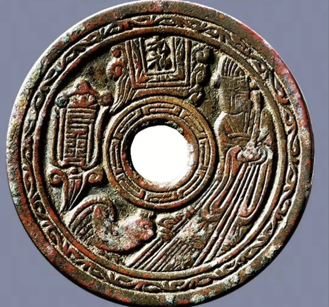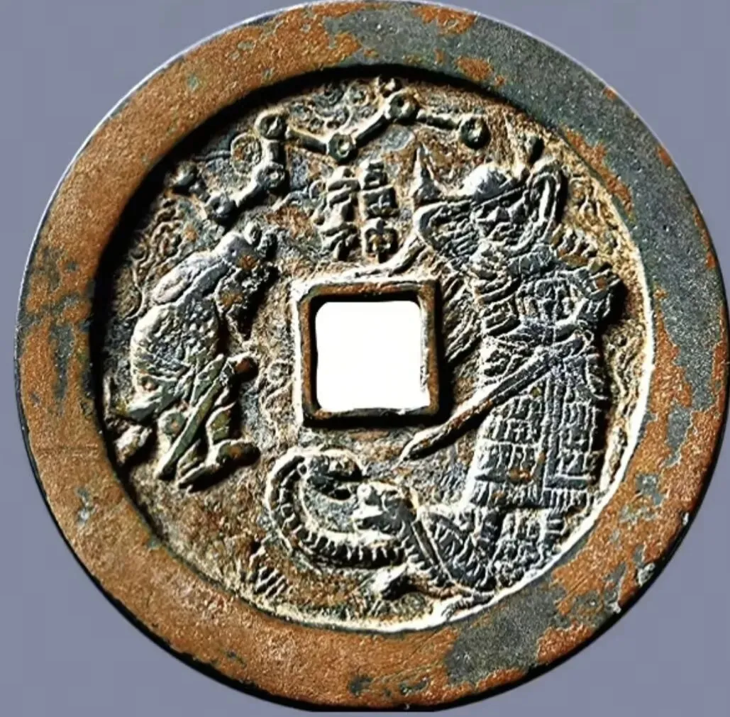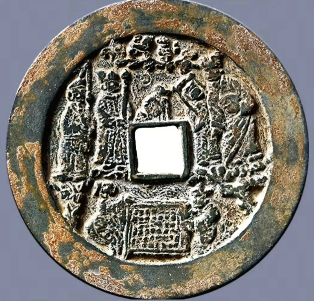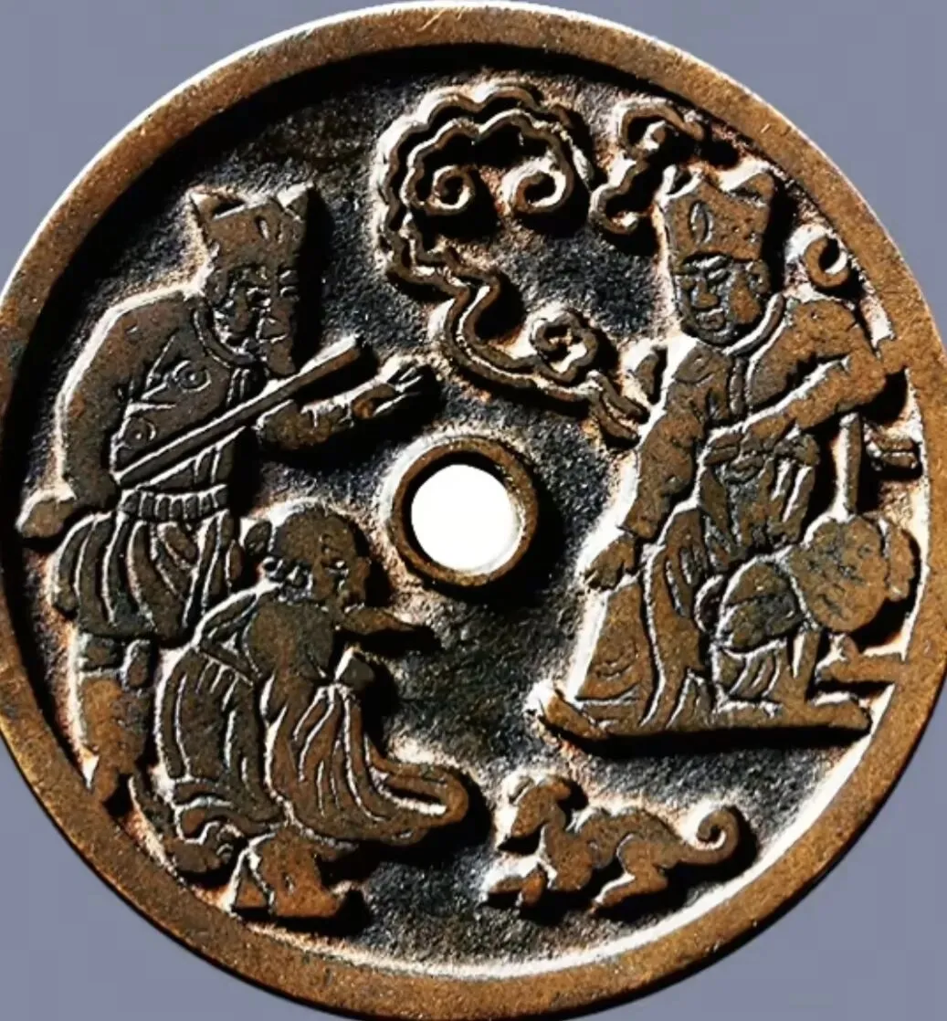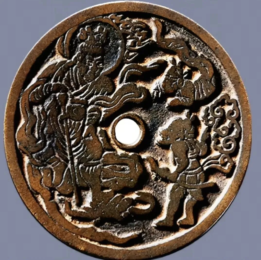 宋代福神真武背二郎作法花钱母钱 尺寸直径59.4mm,厚度3.5,重56.0g,成交价33万9250元。
