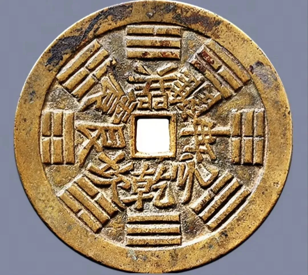 清代富贵荣华背八卦川炉,大型花钱 尺寸,直径91.7mm,厚度4.6,重186.3g,成交价43万1250元。