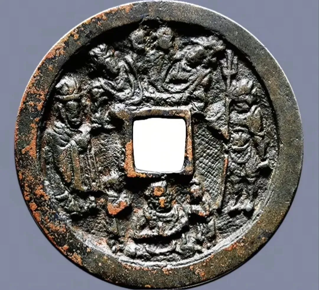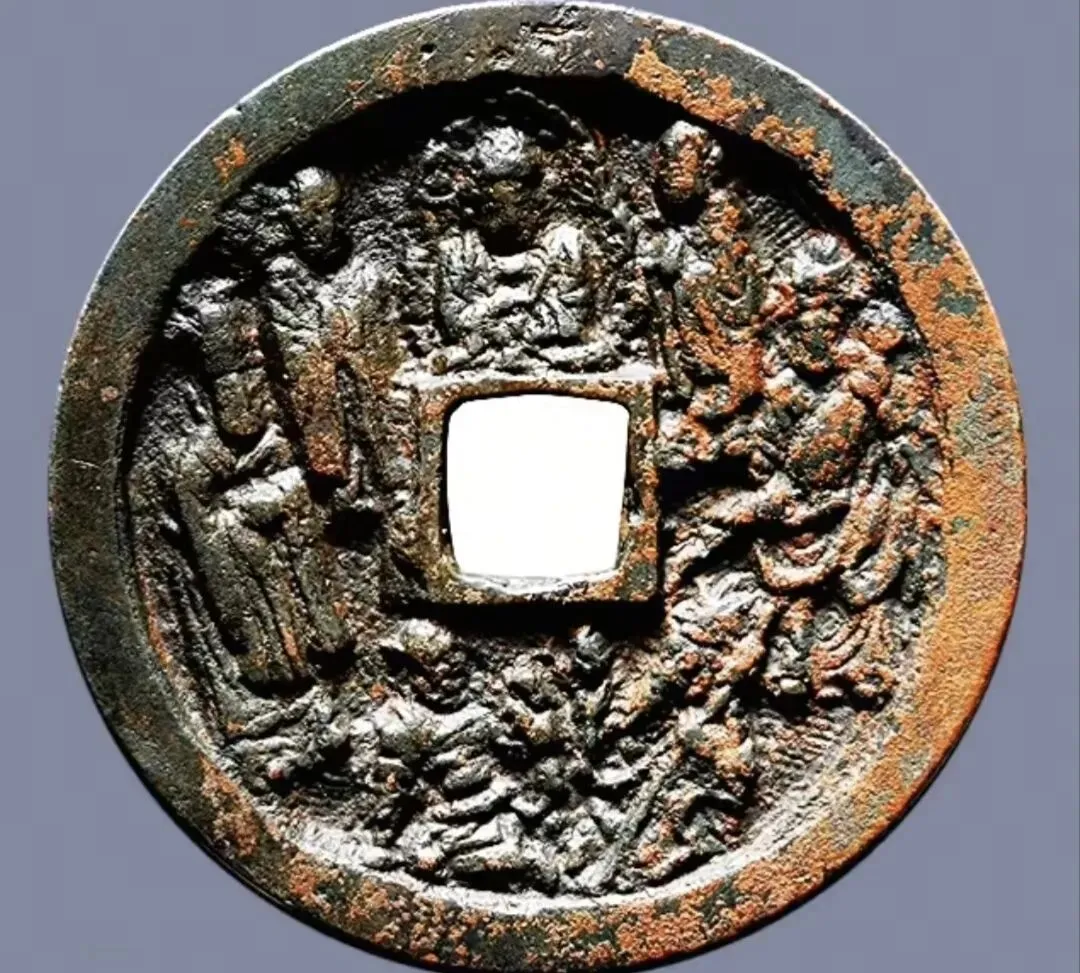 唐代双面礼佛图大型花钱 尺寸,直径61.2mm,厚度4.5,重78.8g。成交价62万1000元。