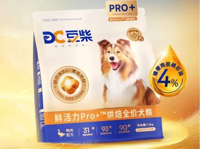 豆柴鲜活力狗粮采用低温烘焙工艺,避免高温膨化,试图保留更多营养。配方上以鲜肉为主,搭配少量果蔬和益生菌,主打易消化和清淡口味。这款产品主要适配肠胃较为敏感、容易软便的幼犬或成犬,也适合对传统膨化粮不耐受的狗狗。