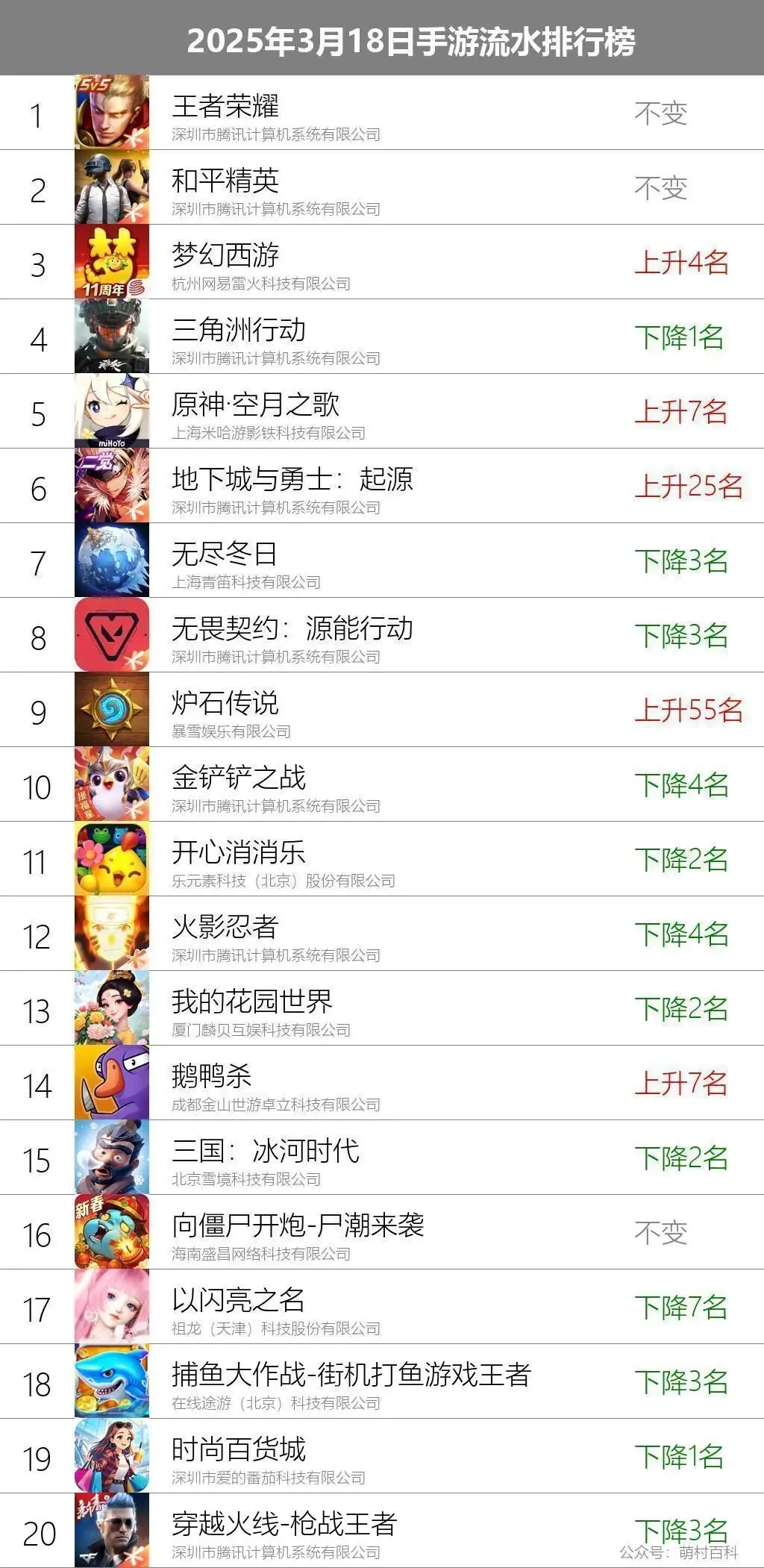 3月18日手游流水排行榜。数据来源于iOS中国区畅销榜数据,数据节点为2026年3月18日22:00。