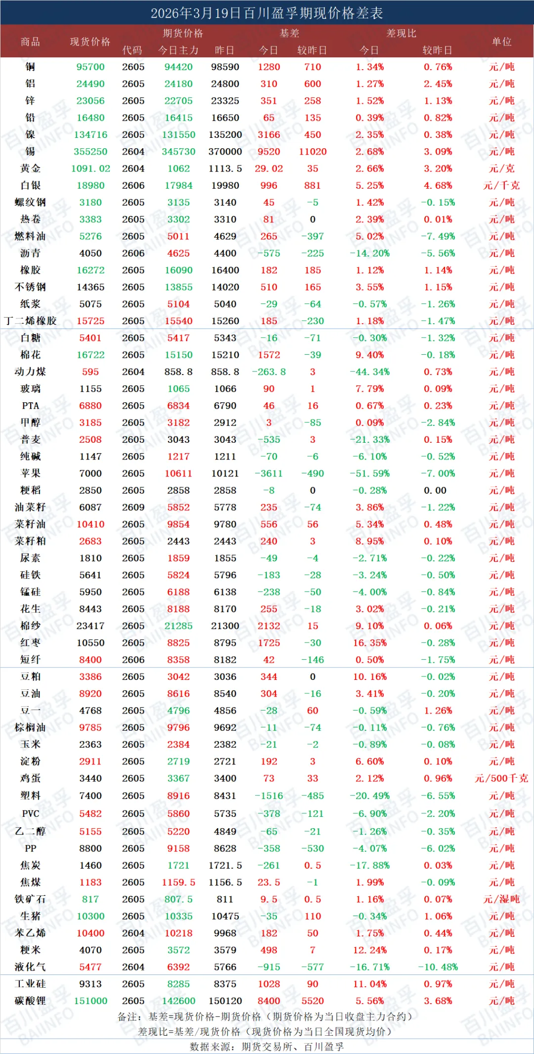 今日期现价格差表