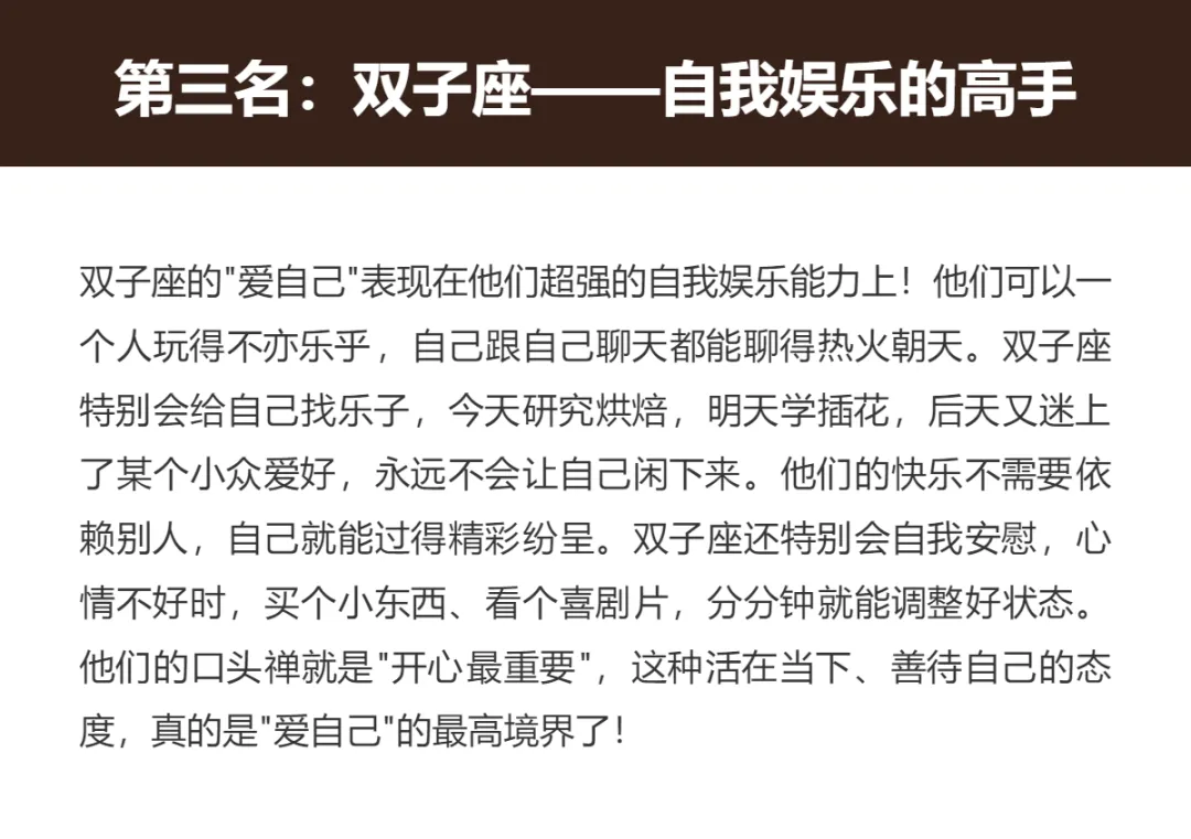 >爱你老己三大星座排行榜