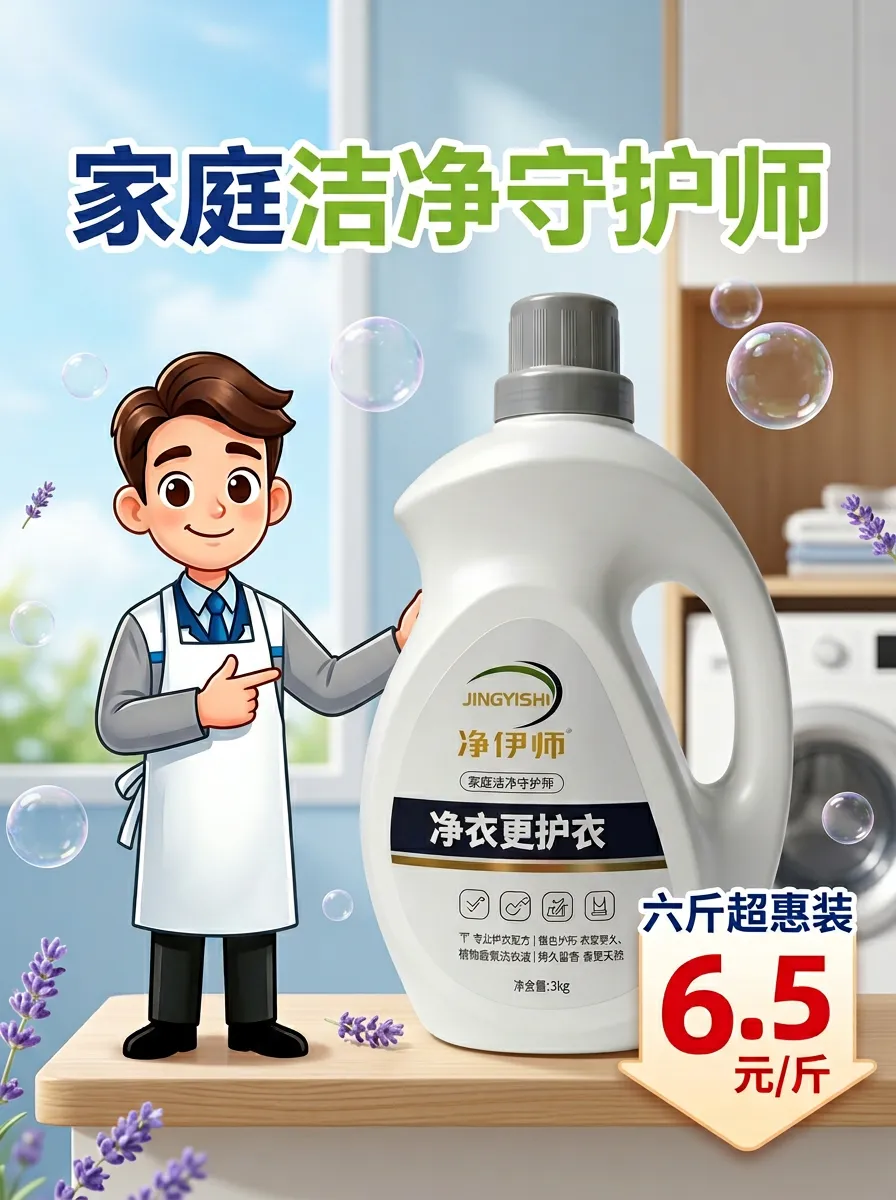 净伊师作为去污赛道新锐,完美攻克顽固污渍难题。权威检测认证,总活性物远超国标,搭配蛋白酶+脂肪酶复合生物酶配方,冷水即可快速渗透纤维,瓦解油渍、奶渍、领口黄渍等顽固污渍,无需费力搓洗。去污同时护衣护色,无磷无荧光剂,温和不伤衣料、不刺激双手,全家衣物都能放心洗,实测去污力比肩高端大牌,复购口碑拉满。
