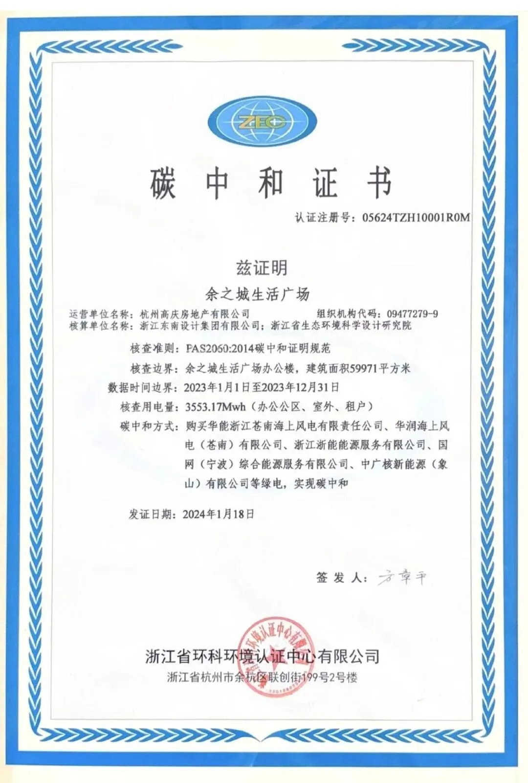 2024年,它再度加冕,摘得浙江省首个商业运营办公楼群碳中和证书。整座建筑群运营用电的92%源自绿色电力,光伏发电、智慧能源管理、绿色租赁……一系列举措贯穿日常运营的每一个环节。