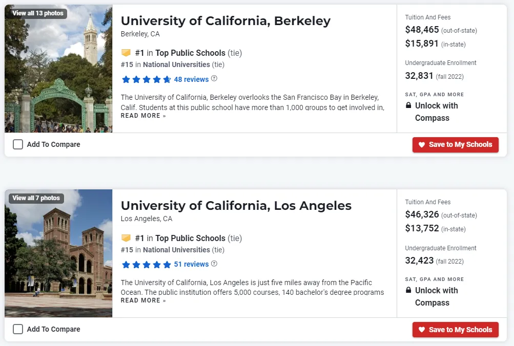 完整报告可以查看:https://www.usnews.com/best-colleges/ca