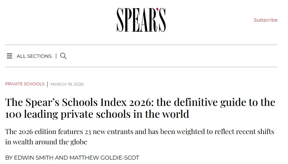 全球极具影响力的斯皮尔斯学校指数 2026(Spear's Schools Index) 正式发布!