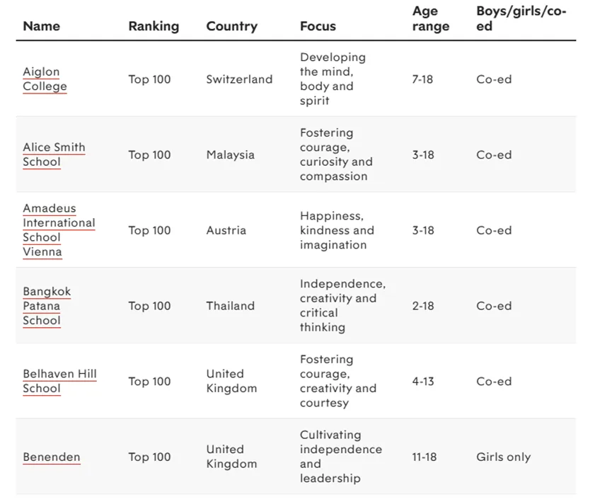 这些学校来自泰国、香港、韩国、阿布扎比、卢森堡和英国,有的首次跻身百强,有的则凭借卓越的表现重返榜单。