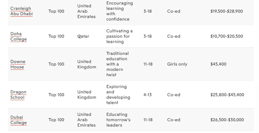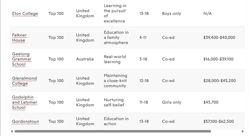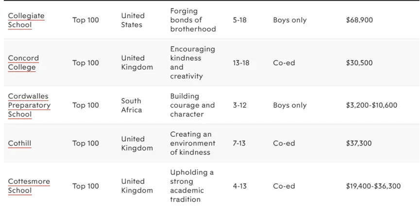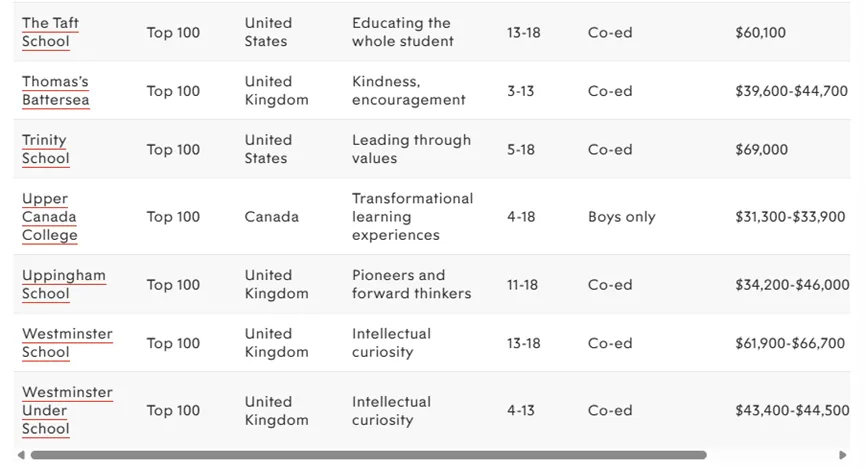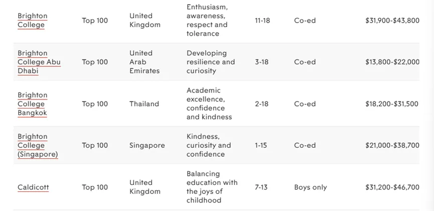 接下来是世界顶尖私立学校TOP100完整名单,点击可以查看大图!