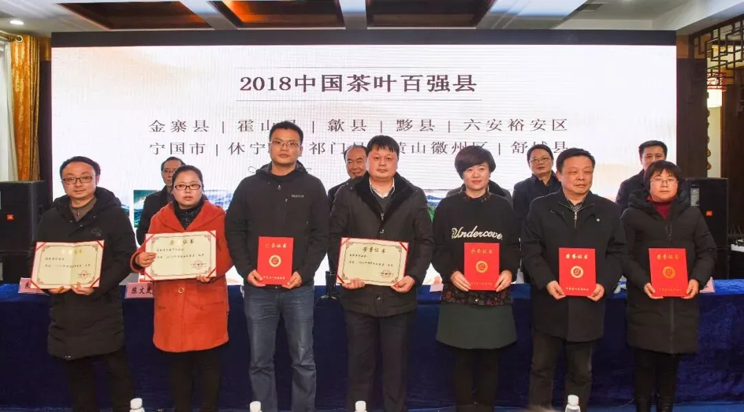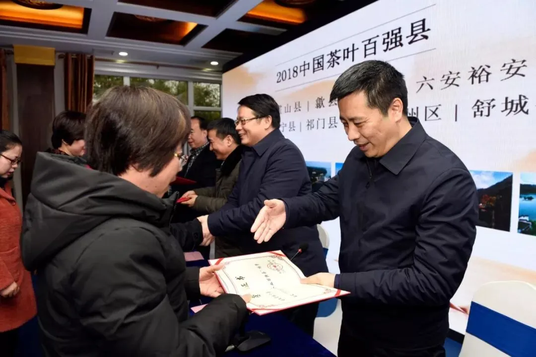 活动中,主办方还为金寨县、霍山县、歙县等区县代为颁发了由中国茶叶流通协会评定的“2018 中国茶业百强县”证书。