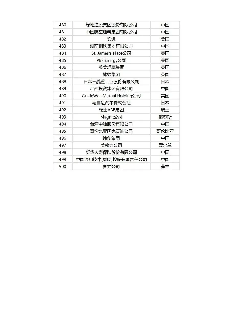 >2025年世界财富500强名单!