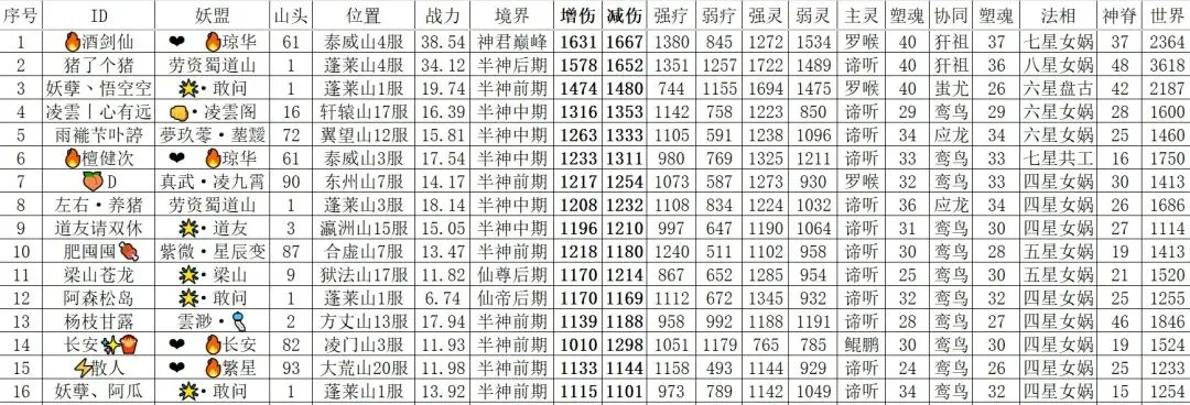 由于这个位面有实力的道友太多,这里选取了增减超1100的道友展示,最强道友酒剑仙依旧是位面之子,全方面领先第二。蓬莱山1服,不亏是寻道的初生之地,三个增减超1100的道友,恐怖如斯。