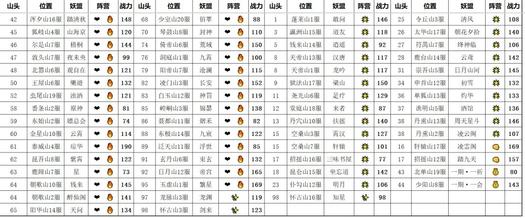 想要查看上一次前一百山头的数据可查看。2026年1月九幽妖盟分布