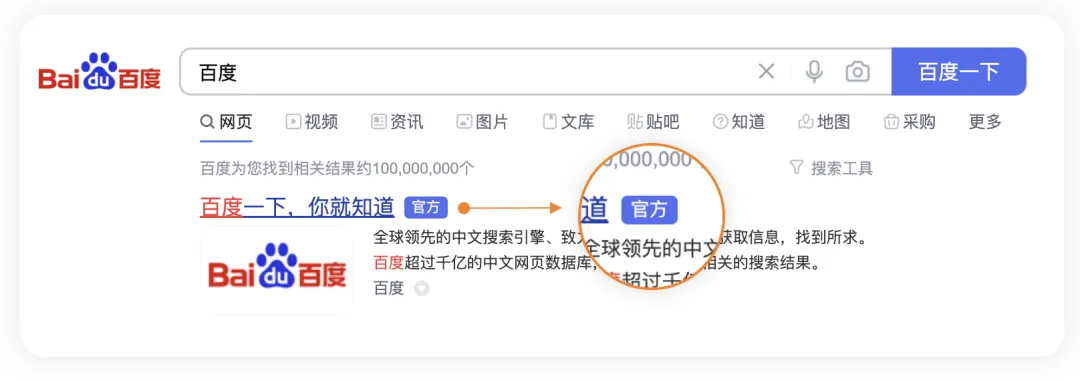 权威象征:搜索结果官网标识,提升网民信赖度