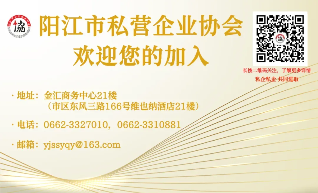 编者按:在新时期经济形势下,阳江市私营企业协会广大会员坚定信心,抓住机遇,攻坚克难,激发潜力,努力把企业做强做优,为阳江经济高质量发展作出了积极贡献,可圈可点!为广泛宣传会员企业品牌形象,协会将持续推出私企会员品牌宣传榜(排名不分先后),帮助会员企业开拓市场、提高知名度、获取“新流量”,展示阳江市私营企业协会在社会各界的正能量形象,助力广大会员实现资源共享、互惠共赢。