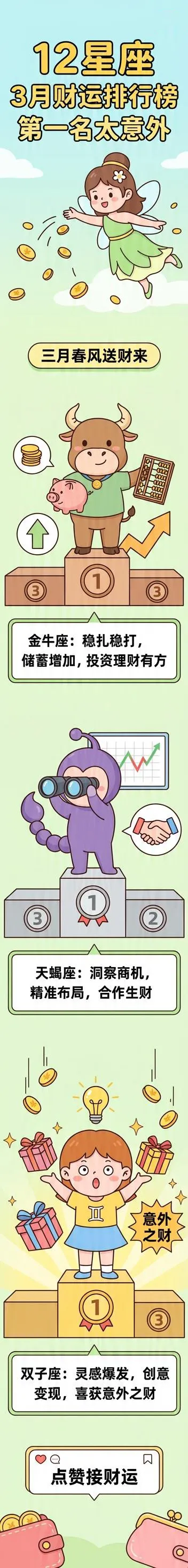 💡 财运稍弱的星座也别灰心,三月适合学习理财知识,为未来铺路哦~
