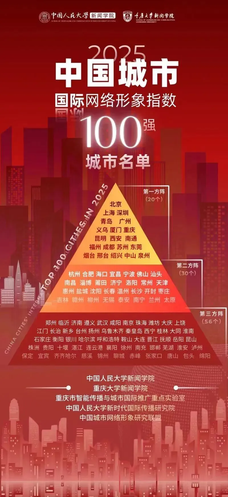近日,第二届中国城市网络形象创新发展论坛暨《中国城市国际网络形象指数报告(2025)》发布会在重庆举行,会上公布了“2025中国城市国际网络形象指数100强”名单,义乌跻身第一方阵,紧随北京、上海、深圳、青岛、广州之后。