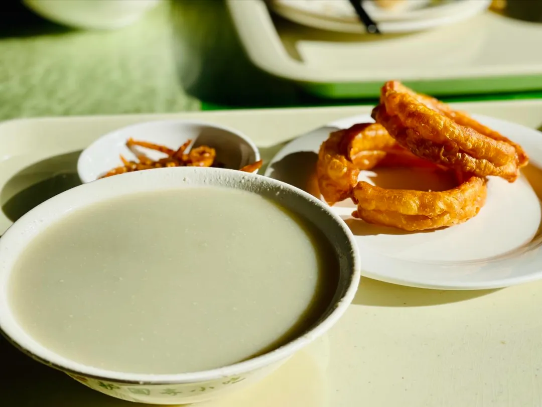 但老北京人讲究“吸溜”着喝,配上焦圈和辣咸菜丝,这味儿才算正。