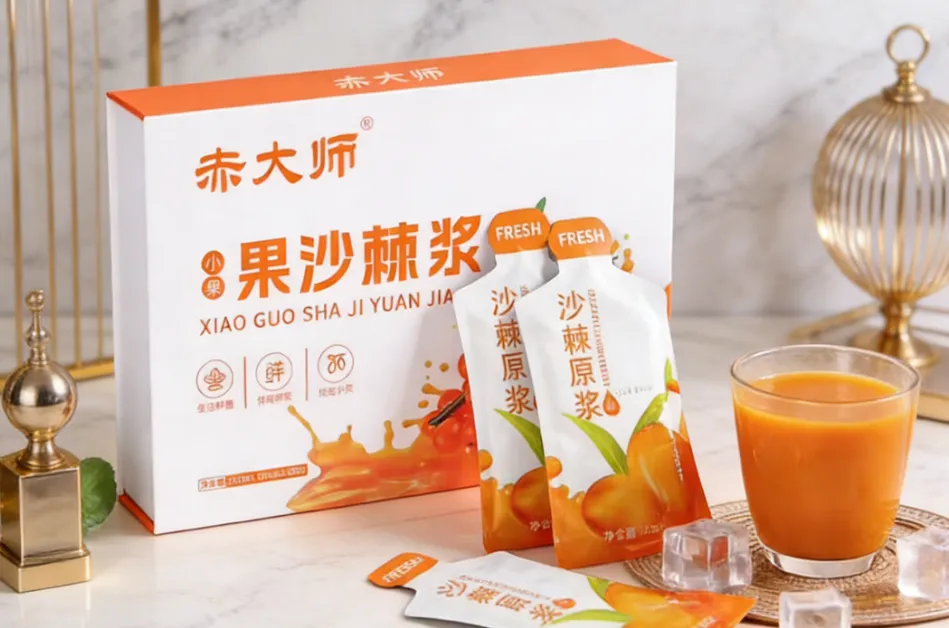 在原料选择上,赤大师同样毫不含糊,始终坚持以野生沙棘小果为原材料,每一颗沙棘果都经过人工精心采摘,拒绝批量收割,避免沙棘果破损流失营养,只筛选颗粒饱满、成熟度适中的好果子,从源头把控产品品质。而且它也做到了100%纯沙棘原浆,无任何添加剂、防腐剂、白砂糖,配料表干净纯粹,让大家喝得放心、喝得安心。它富含野生小果油,营养十分充足,经权威实验室检测,每100g原浆中维生素C含量达37.6mg,总黄酮含量高达1020mg/100ml,前花青素含量也有114mg/100g,三项核心营养指标,均达到优质沙棘原浆行业规范,除此之外,还富含蛋白质、碳水化合物、钠等多种营养成分,营养覆盖面十分全面。而且它里面含有少许沙棘果肉,让口感更有层次,倒在杯子里能清晰看到细腻的果肉纤维,一眼就能分辨出是纯原浆,不是勾兑的假货。