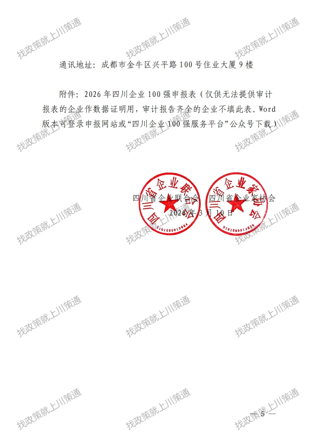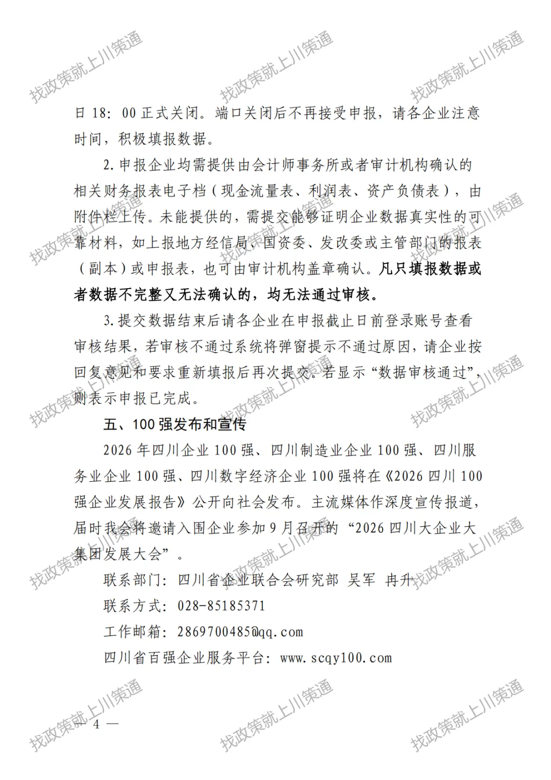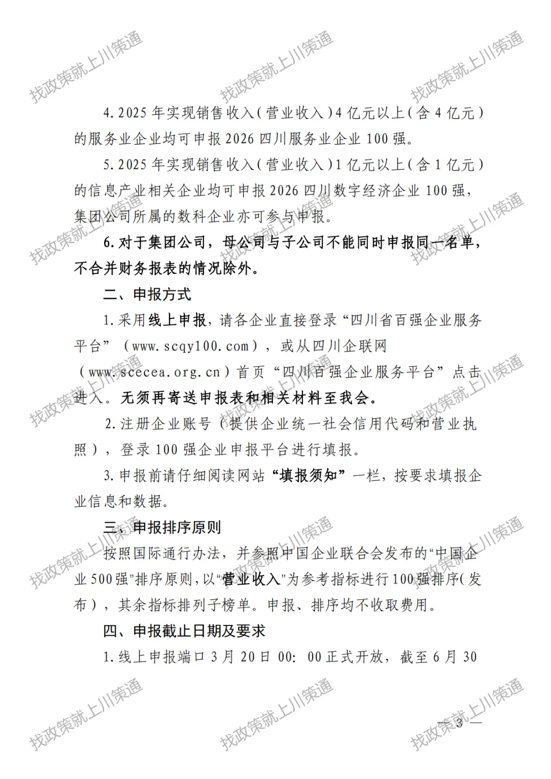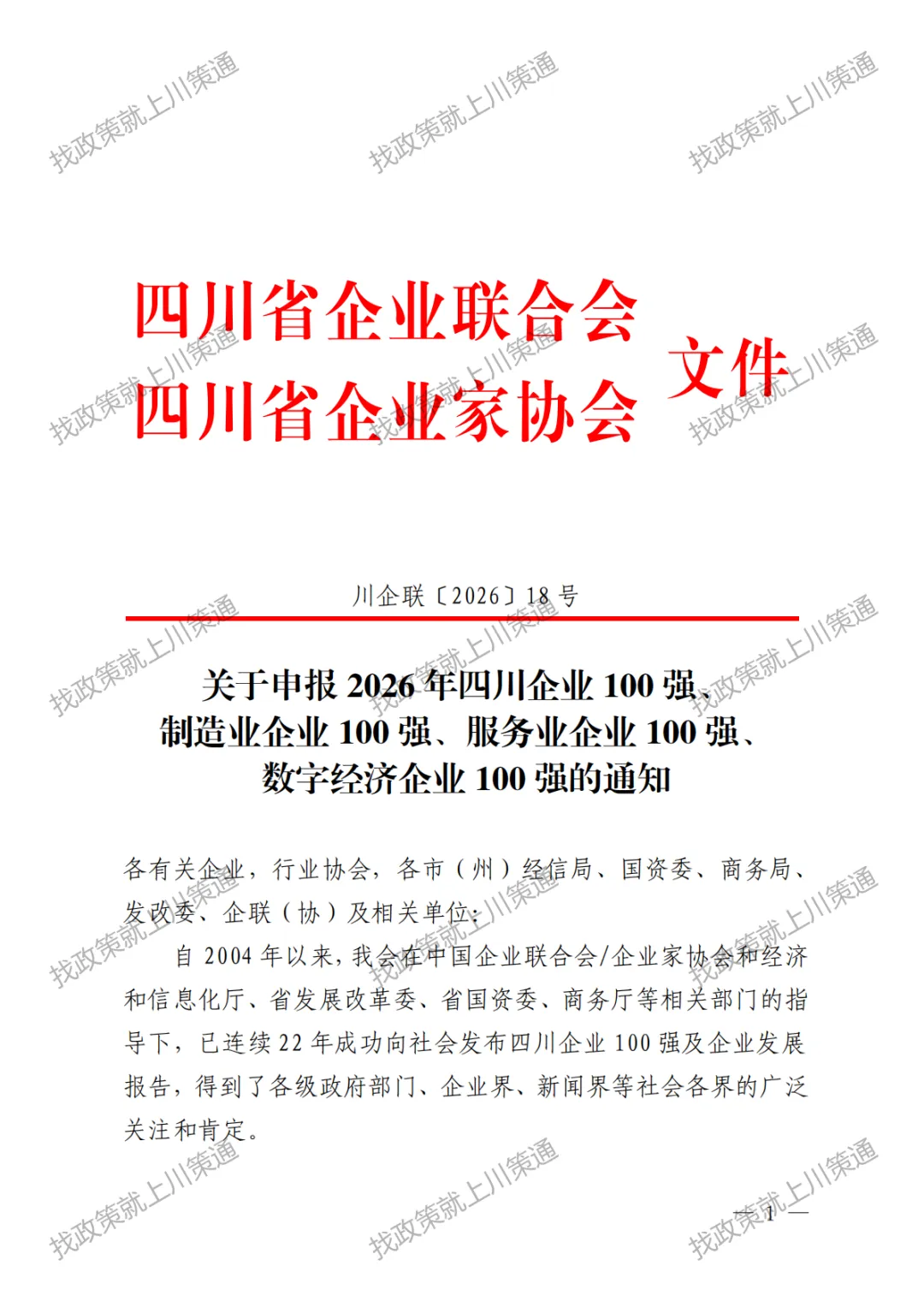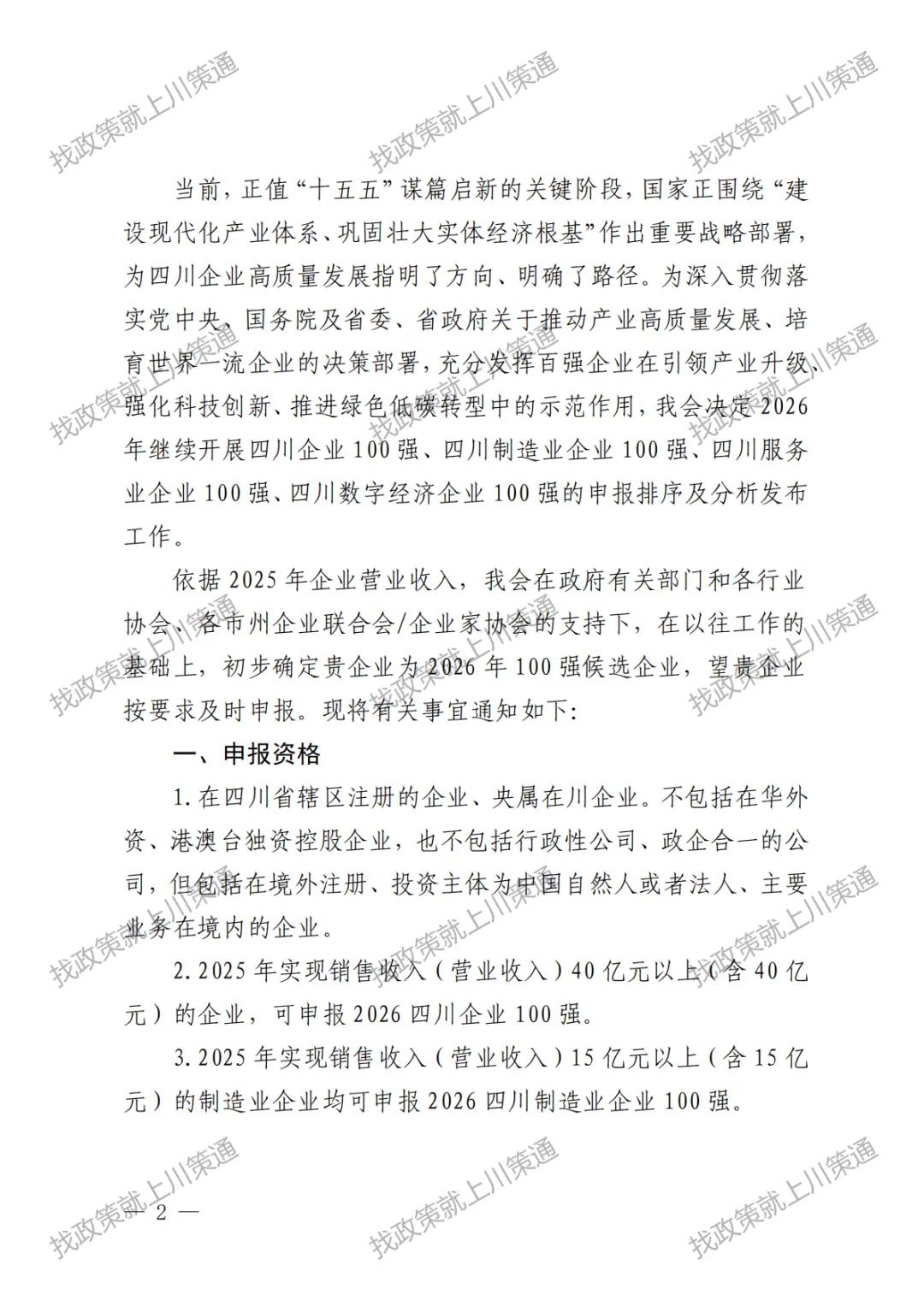 【100强】关于申报2026年四川企业100强、制造业企业100强、服务业企业、数字经济企业的通知
