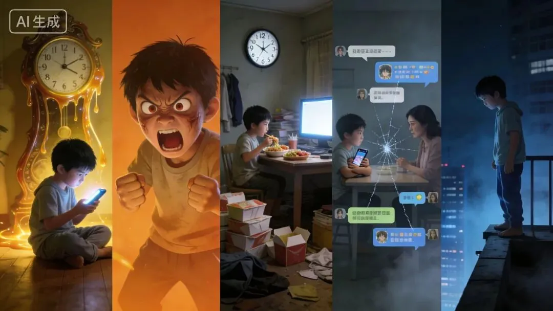 · 关系失控:和父母对抗、和朋友只聊游戏、和现实脱节