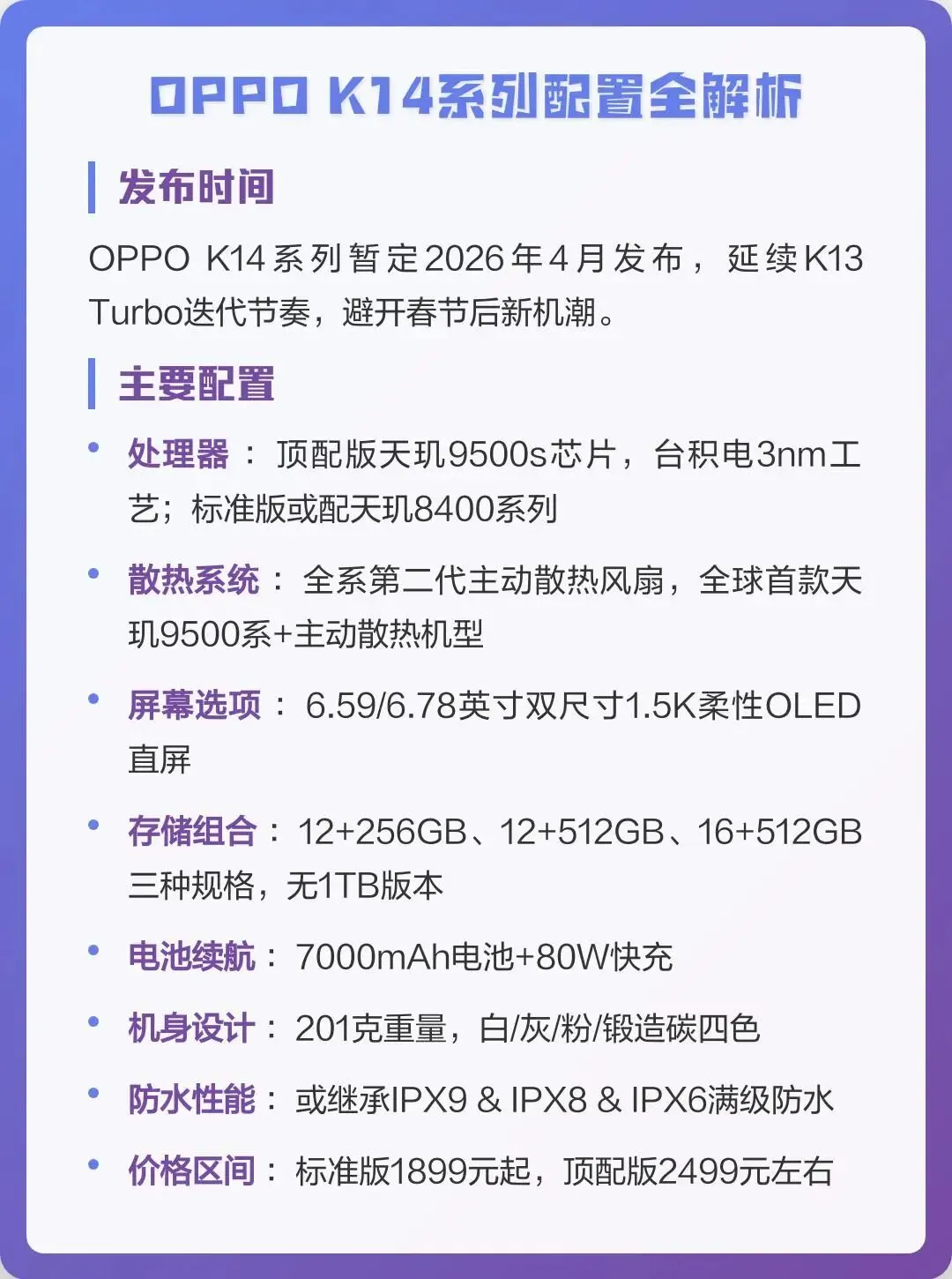 💹 OPPO K14 Turbo:2300-2500元💹 OPPO K14 Turbo Pro:2500-3000元