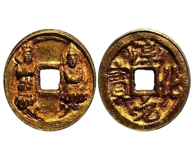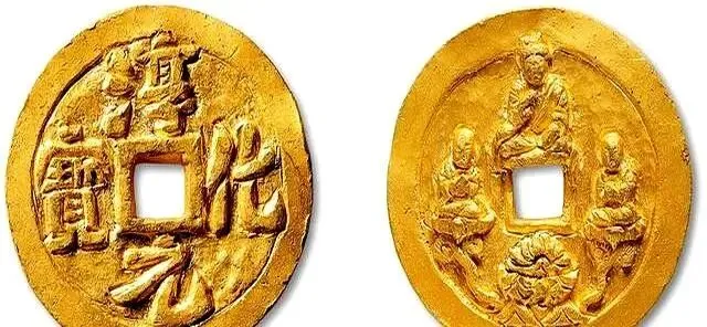 榜眼落在北宋“淳化元宝”背三佛像的大型金质供养钱。