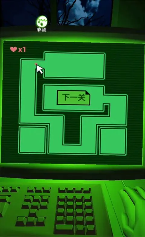 2、游戏模拟了在电脑前操作鼠标的场景,玩家通过触摸屏幕来控制鼠标光标在迷宫中移动