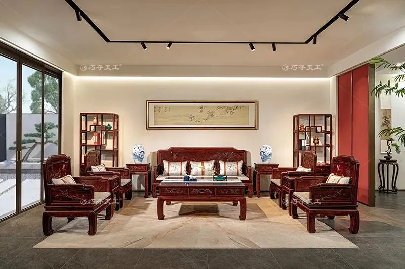 泰和园来自深圳,创始人邵湘文是传统工艺大师。他们的招牌是“丝翎檀雕”技法,小叶紫檀家具做得尤其精。《梅兰竹菊》系列口碑不错。泰和园的定位很明确:只做高品位、可定制的艺术家具,不强求规模,但求每件都能传。如果你买家具不光是为了用,还看重艺术价值和收藏属性,这个品牌值得关注。